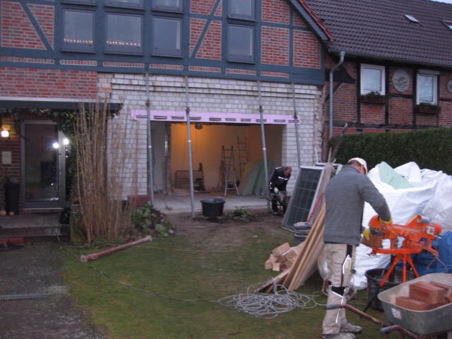 Es werden jeweils links und rechts Pfeiler gemauert auf denen ein Betonsturz aufliegen wird,